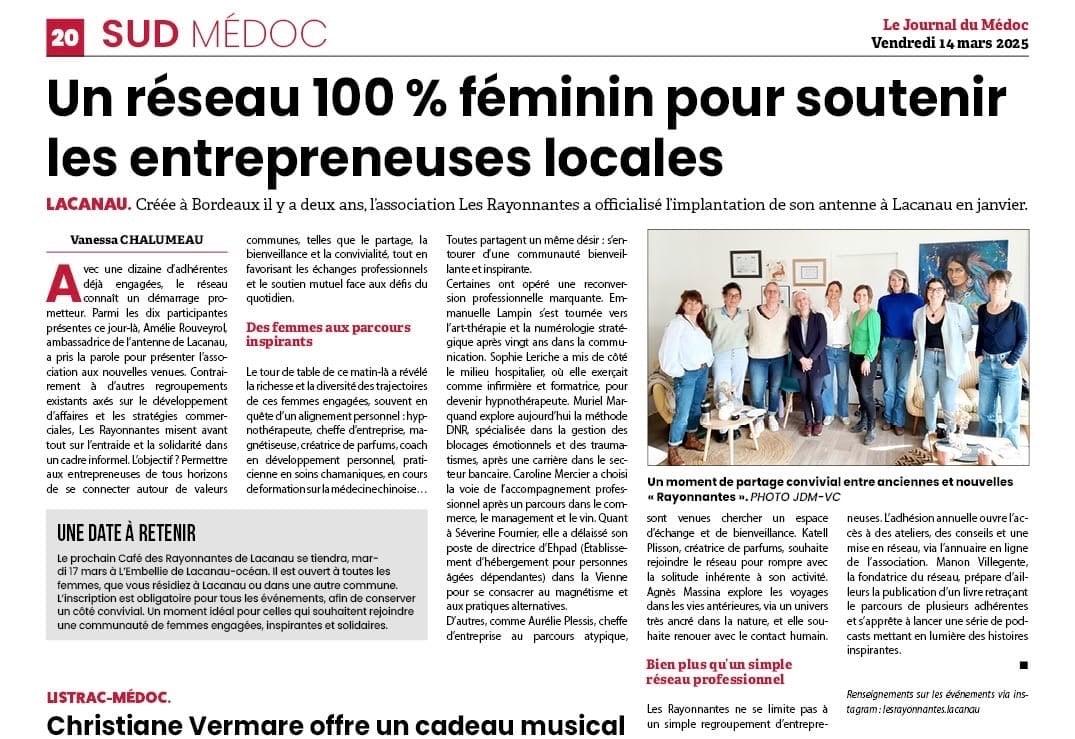Depuis Février 2025, j'ai l'immense plaisir de faire partie de l'association Les Rayonnantes, un club pour entrepreneuses pas comme les autres.